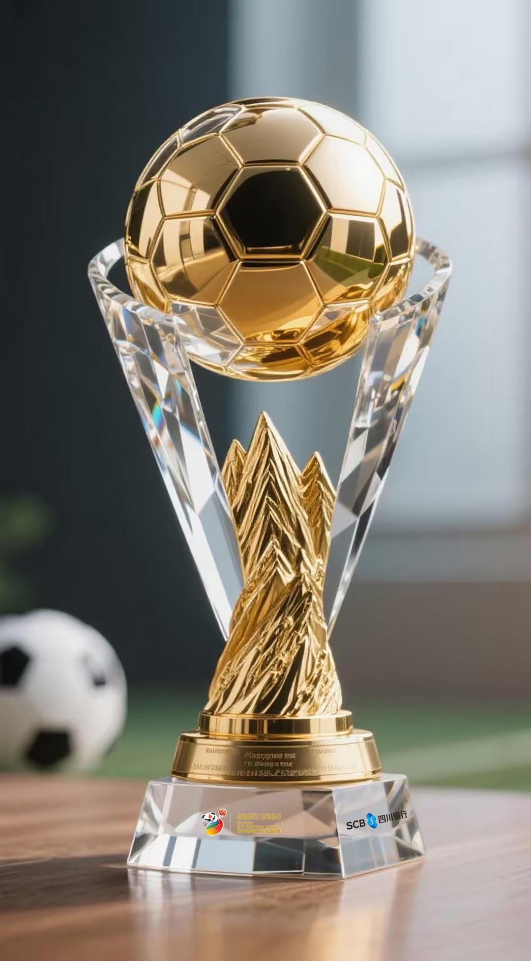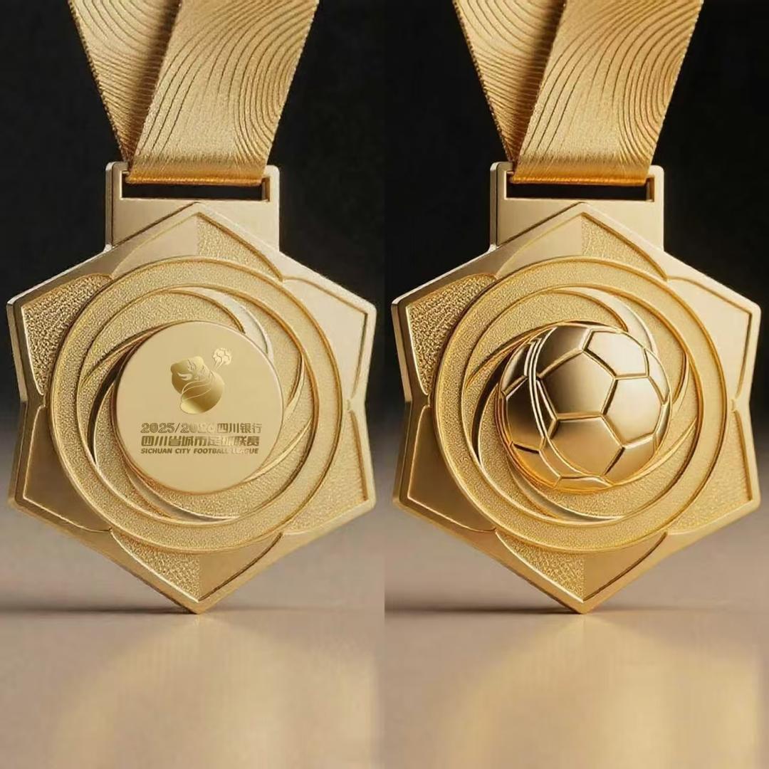 奖杯设计既以璀璨的金色足球点明主题,更以水晶与山峰交融的造型,寄寓着“勇于攀登、问鼎巅峰”的体育精神。材质上一刚一柔,造型上传统与现代并重,实现了荣誉传承与审美创新的平衡。奖牌的设计同样别具匠心,它以成都市花芙蓉为底,巧妙融入了代表古蜀文明的太阳神鸟金饰螺旋纹路与可爱的大熊猫图案,三大标志性符号交汇,川韵十足。