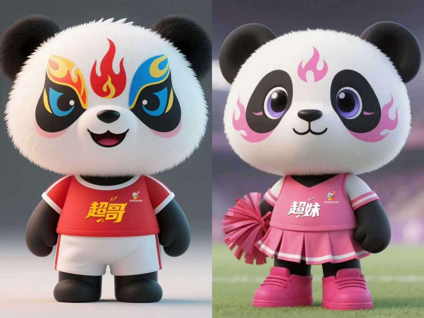 联赛吉祥物以大熊猫为原型,创造性地设计出“超哥”与“超妹”这一对生动形象。“超”字源于“川超”,而“哥”“妹”的亲切称呼,充满了浓郁的四川本地生活气息。设计细节上,化用了经典的川剧变脸元素,身着动感时尚的运动服饰,球衣背后的“21”这个数字,代表着四川全省21个地市州,寓意着“川超”是一场属于全川每一个城市的共同盛会。